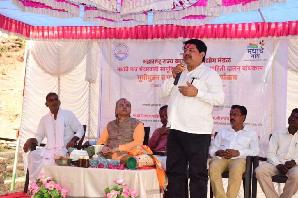 The foundation stone laying ceremony and honey beekeeper training program of Bhandarwadi (Honey Village) was held in Nanded on 27 January 2026 in the presence of Chairman Hon. Mr. Ravindra Sathe and Deputy Chief Executive Officer Mr. Nityanand Patil.