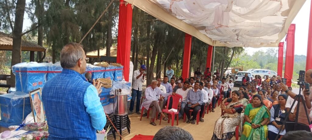 Teakwood honey bee boxes (Sateri Sagwan honey boxes) were distributed at Gholwad by the Chairman of the Board , Hon. Ravindra Sathe.